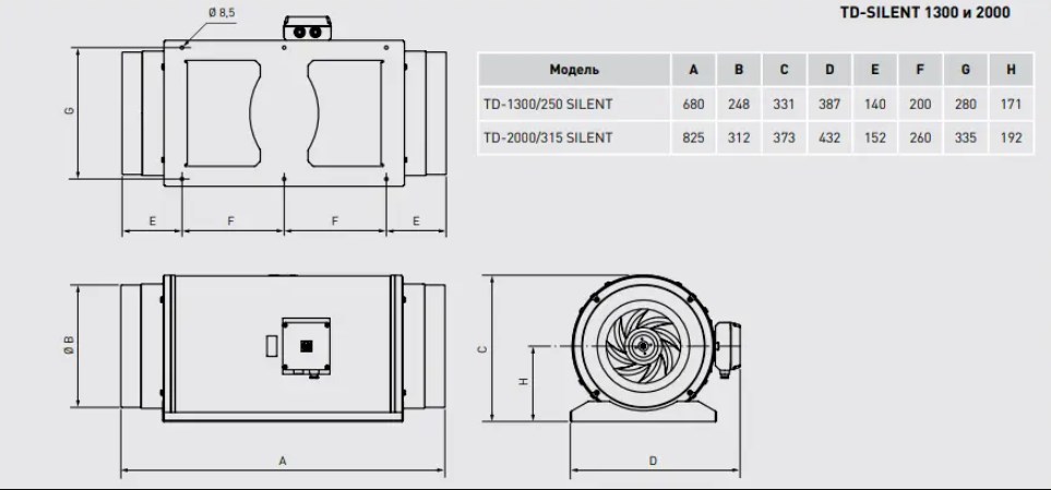 Канальні вентилятори TD-SILENT розроблені спеціально для приміщень із високими вимогами до низького рівня шуму. Вентилятори виготовляють з високоякісного пластику та комплектують високоефективними крильчатками з діагональними лопатками. Клас захисту IP44, клас ізоляції B.