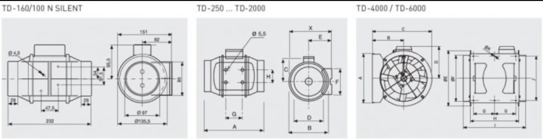 Канальні вентилятори серії TD-SILENT розроблені спеціально для приміщень із високими вимогами до низького рівня шуму. Вентилятори виготовляються із високоякісного пластику та комплектуються високоефективними крильчатками з діагональними лопатками.