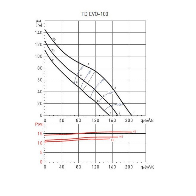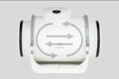 Асортимент серії TD EVO низькопрофільних прямоточних вентиляторів для повітроводів круглого перерізу містить у собі сім діаметрів і охоплює діапазон витрати від 210 до 1840 м³/год.