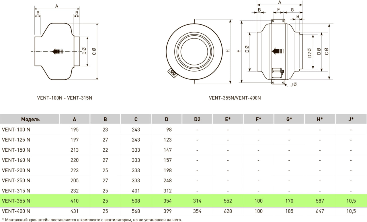 | Модель | VENT-355N C |